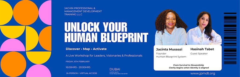 Draft your own emerging Human Blueprint: identity shift, leadership reality, and next structural step. Outcome: Participants leave with clarity and a tangible road map.